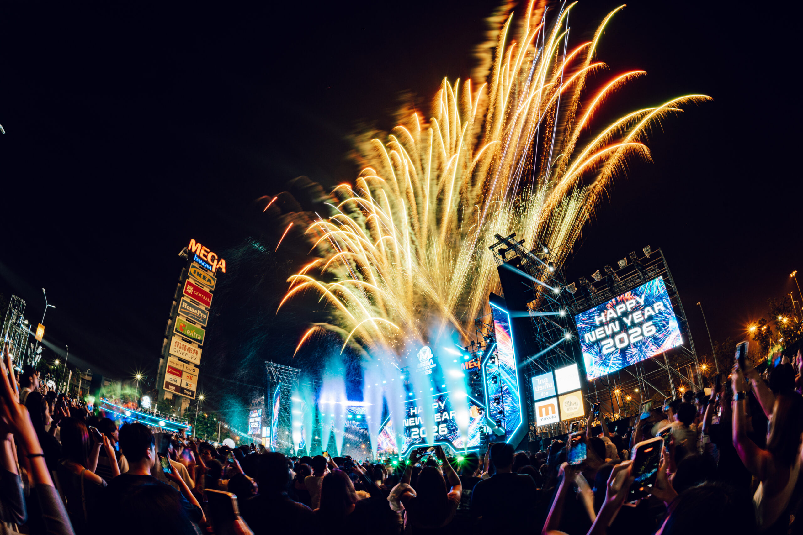 ศูนย์การค้าเมกาบางนา ร่วมกับ บริษัท ไทยประกันชีวิต จำกัด (มหาชน), ผู้จัดจำหน่ายเก้าอี้นวดไฟฟ้า แบรนด์ MAKOTO, ซันแวลเล่ย์ และ เมกา ซีนีเพล็กซ์ เติมเต็มค่ำคืนสุดพิเศษส่งท้ายปีเก่า ต้อนรับปีใหม่ด้วยบรรยากาศสุดคึกคักในงาน “MEGA COUNTDOWN 2026” ที่ตอกย้ำความเป็นแลนด์มาร์กเคาท์ดาวน์ที่ยิ่งใหญ่ที่สุดแห่งกรุงเทพฯ ตะวันออก บนพื้นที่กว่า 10,000 ตารางเมตร โดยมีประชาชนและนักท่องเที่ยวหลั่งไหลมาร่วมเฉลิมฉลองอย่างล้นหลามรวมกว่า 500,000 คน ตั้งแต่ช่วงบ่าย พื้นที่ลานจอดรถหน้าศูนย์การค้าเมกาบางนาจึงเต็มไปด้วยรอยยิ้ม ความอบอุ่น และเสียงดนตรีที่ดังก้องตลอดกว่า 9 ชั่วโมงเต็ม