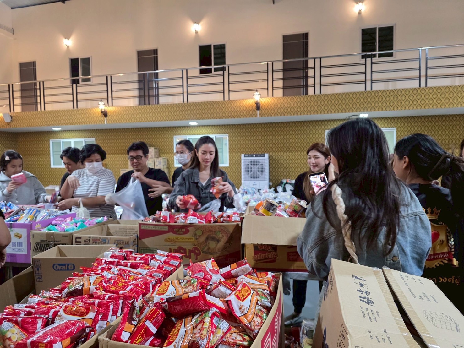 ระหว่างที่ทั้งคู่กำลังช่วยกันแพ็กของอย่างตั้งใจ พี่บุ๋ม ปนัดดา ก็ได้ วิดีโอคอล เข้ามาขอบคุณด้วยตัวเอง พร้อมส่งกำลังใจให้แอฟ น้องปีใหม่ และทีมงานองค์กรทำดี ที่ร่วมกันแบ่งปันน้ำใจครั้งนี้